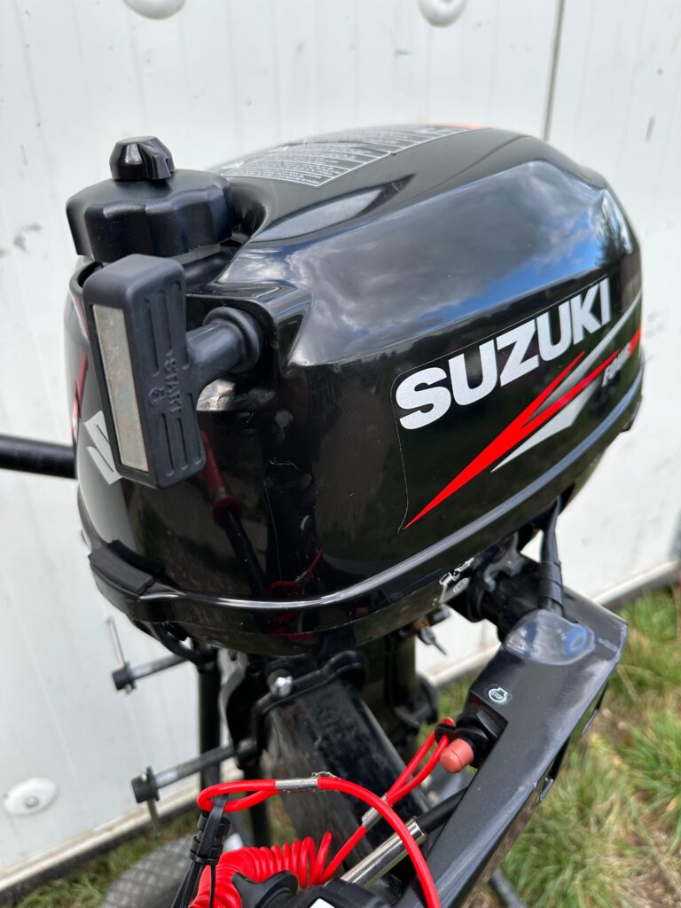 Een Suzuki 2.5pk kortstaart buitenboordmotor. Deze buitenboordmotor is zowel uiterlijk als innerlijk in zeer goede staat.